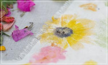 Le Tataki-zomé consiste à marteler sur un tissu des végétaux fraîchement cueillis pour réaliser une impression tout ce qu’il y a de plus naturelle !