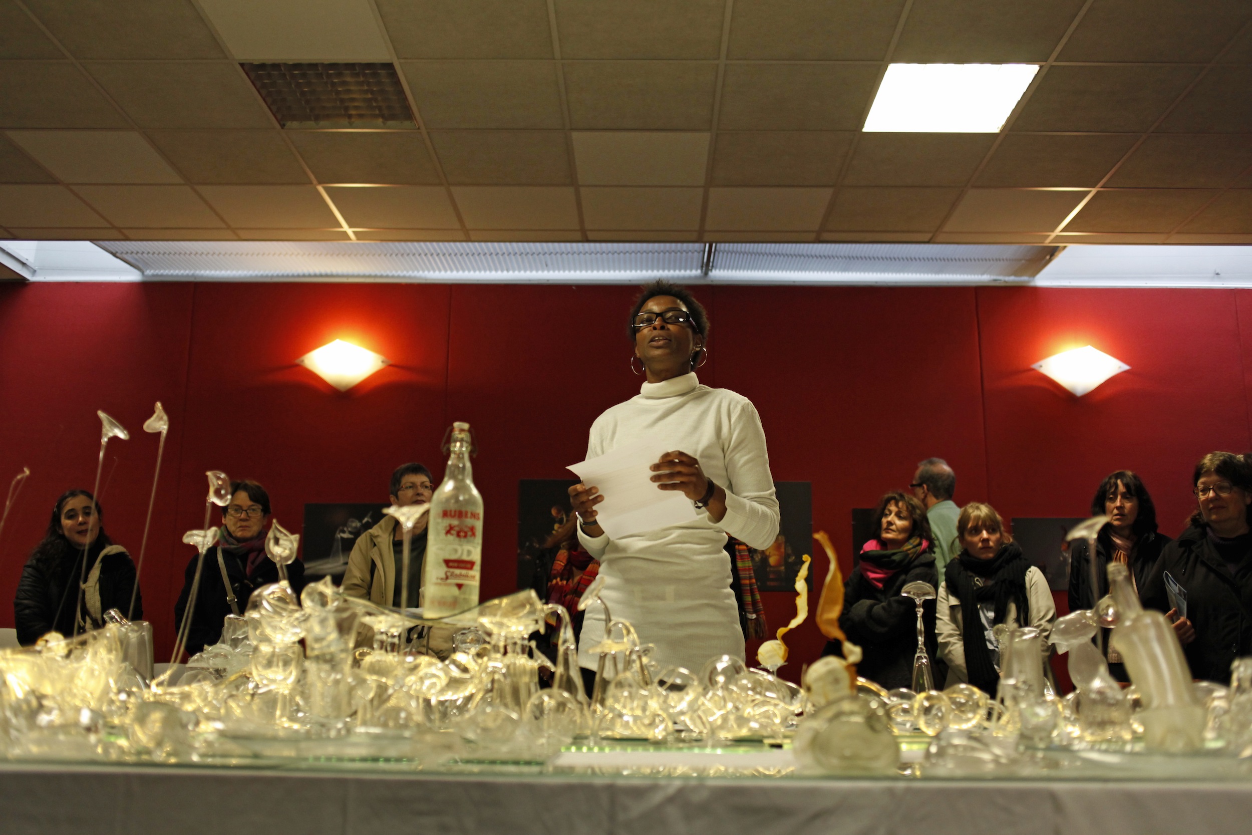 A la brasserie de la Restauthèque, au milieu des livres, les garçons de café de la Compagnie Casus Délires ont servi au public des petits vers poétiques, des cocktails littéraires et des mises en bouche de mots rares. Puis au restaurant, autour de quelques tables dressées, grâce à un service raffiné et loufoque, les participants ont dégusté d'excellents morceaux de littérature accompagnés de pétillantes bulles de BD.